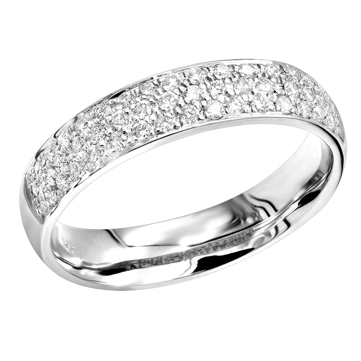 Diamond Wedding Bands for Women: this diamond wedding ring features classic 5mm wide band style, comfort fit for easy wear and decorated with 0.6 carats of pave set round brilliant diamonds half set around the band making it also a perfect Anniversary Ring. This diamond wedding band is available in 14k white gold, yellow gold and rose gold and comes with a nice gift box ready to be presented to that special someone.