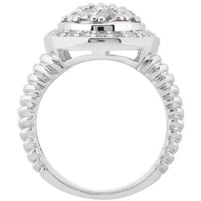 14K White Gold Ladies Cluster Diamond Ring 1 Carat