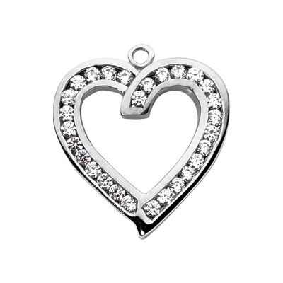 14K White Gold Open Heart Pendant 0.90ct Round Diamonds