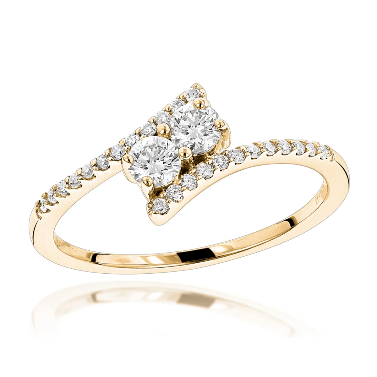 14K Yellow Gold 2 Stone Diamond Ladies Ring 0.4ct Love And Friendship Design