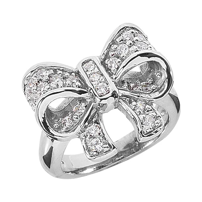 18K White Gold Round Diamond Ladies Ring 0.58ct 5.7mm