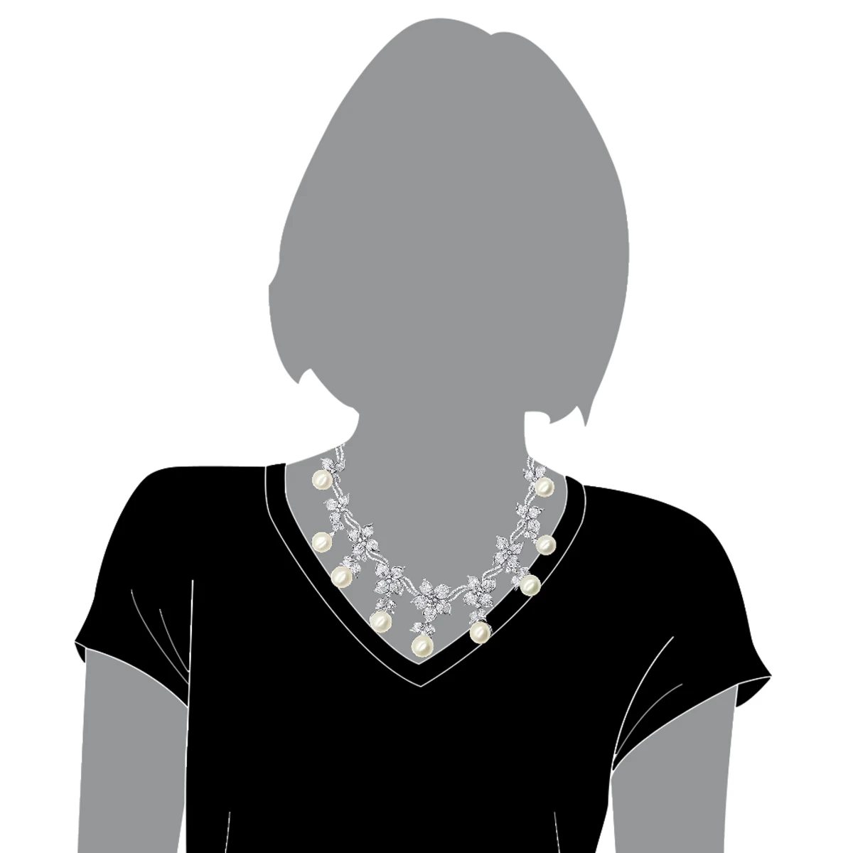 Designer South Sea Pearl And Diamond Necklace Flower Design 18K White Gold