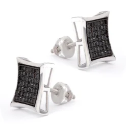 14K Black Plated Gold Cluster Black Diamond Stud Earrings 4.32ct