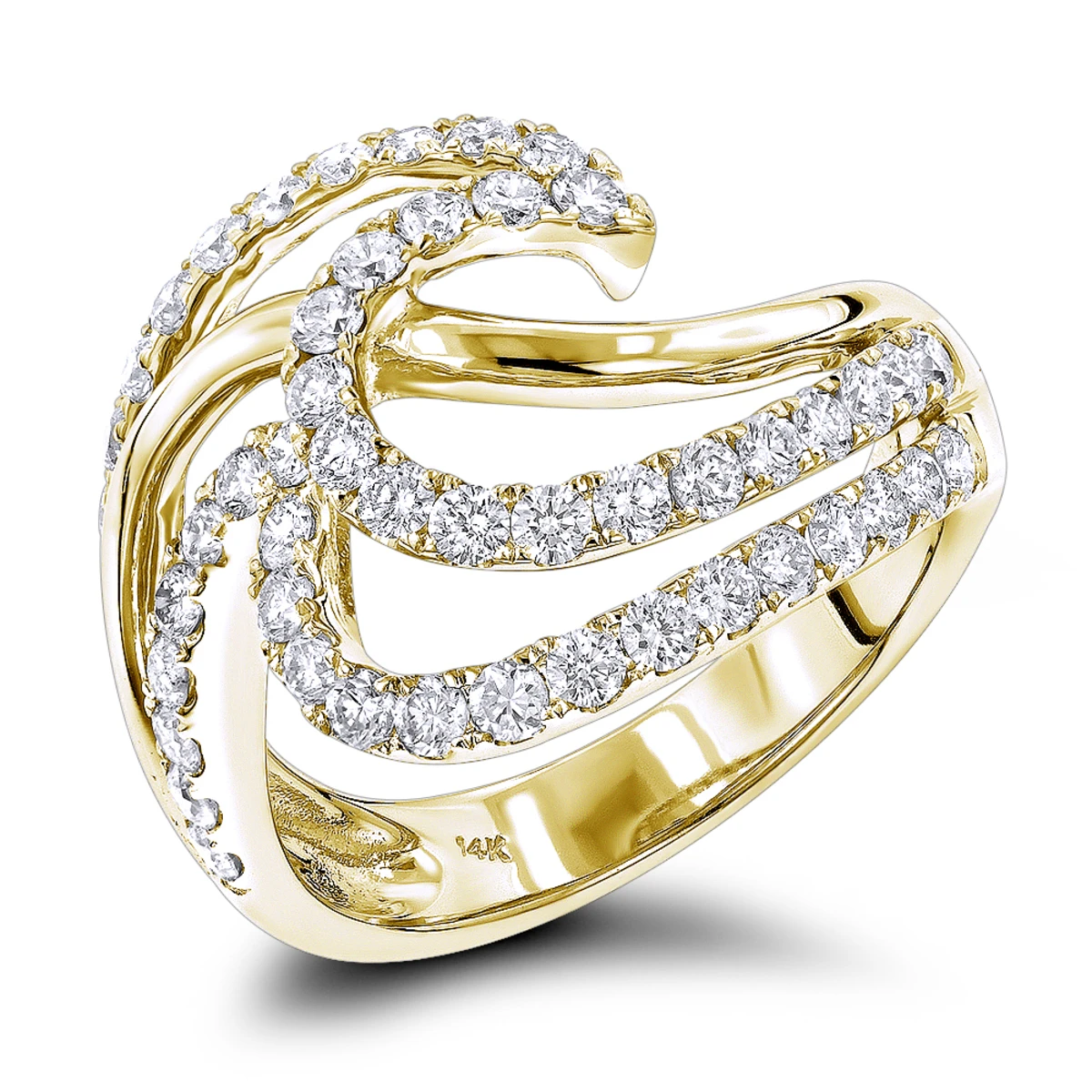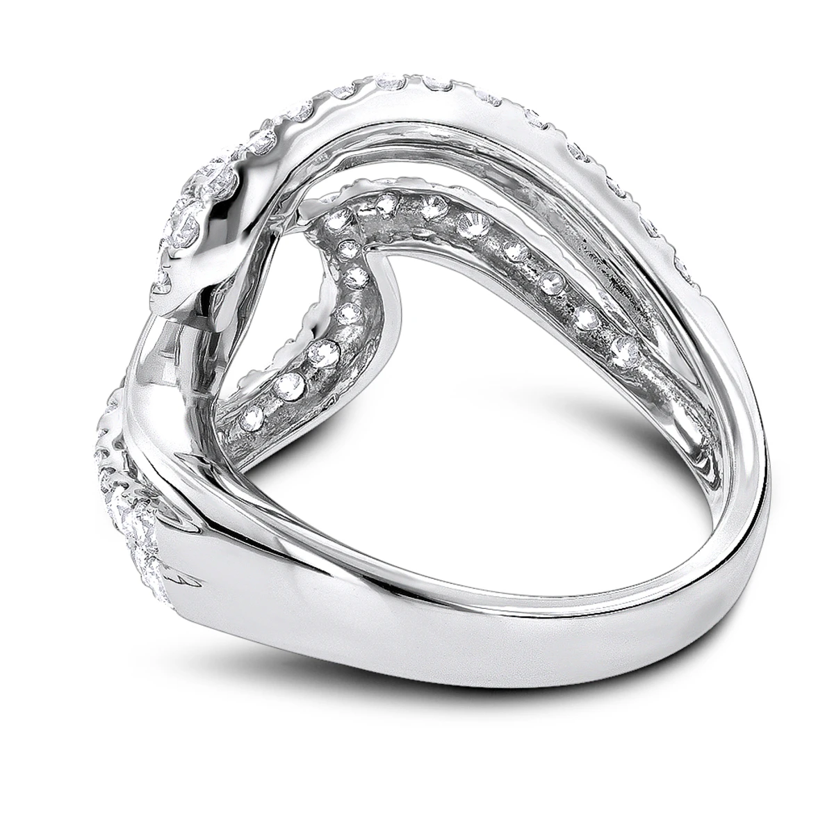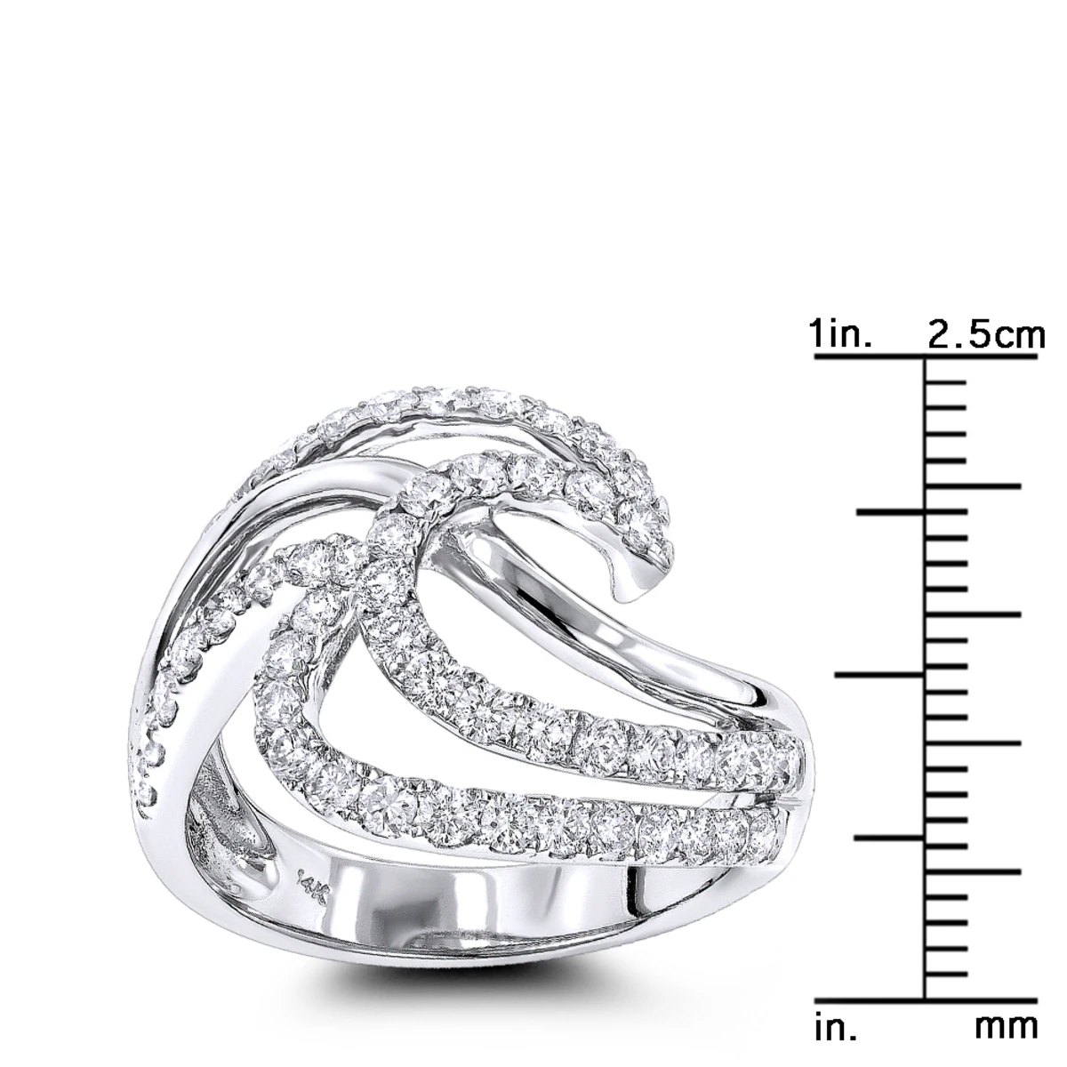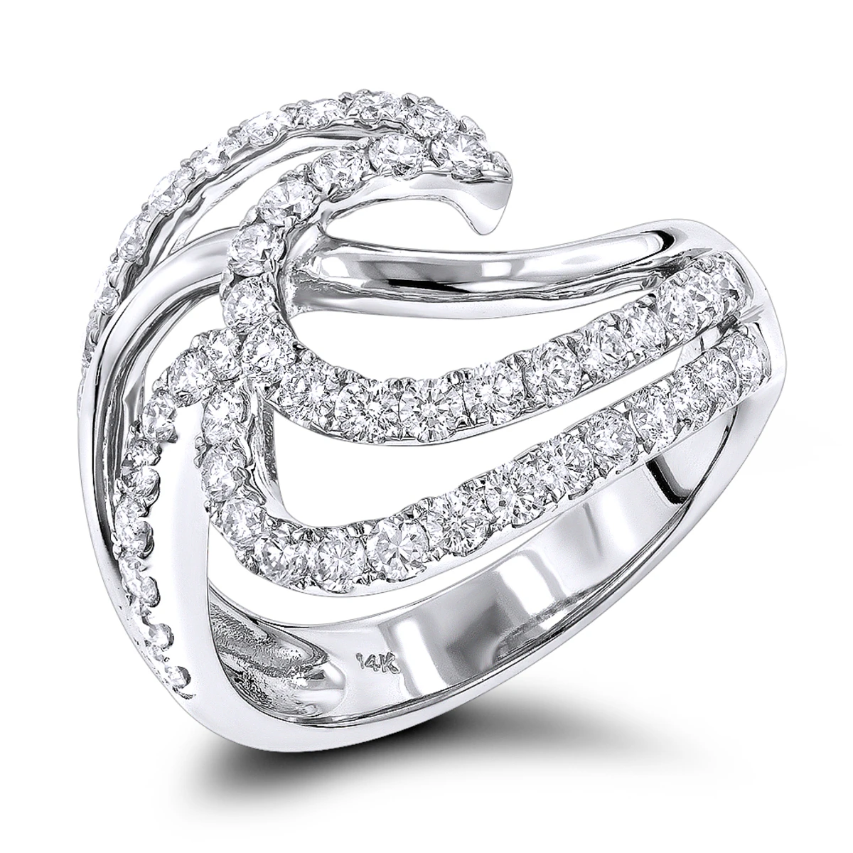 Gold Diamond Wave Right Hand Ring For Women 1.5ct 14K White Gold