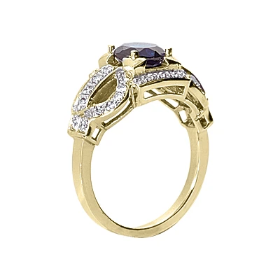 This Ladies Blue Sapphire and Diamond Ring in 14K gold features 0.34 carats of round diamonds and a 1-carat round sapphire. This diamond ladies ring is available in Platinum, 18k or 14k yellow, rose, white gold, various sizes, and can be customized with any color and quality diamonds. Please note: it will take us 3-5 business days to make this ring for you so please plan accordingly. Please contact us at 212-398-3123 if your size or desired option is not listed.