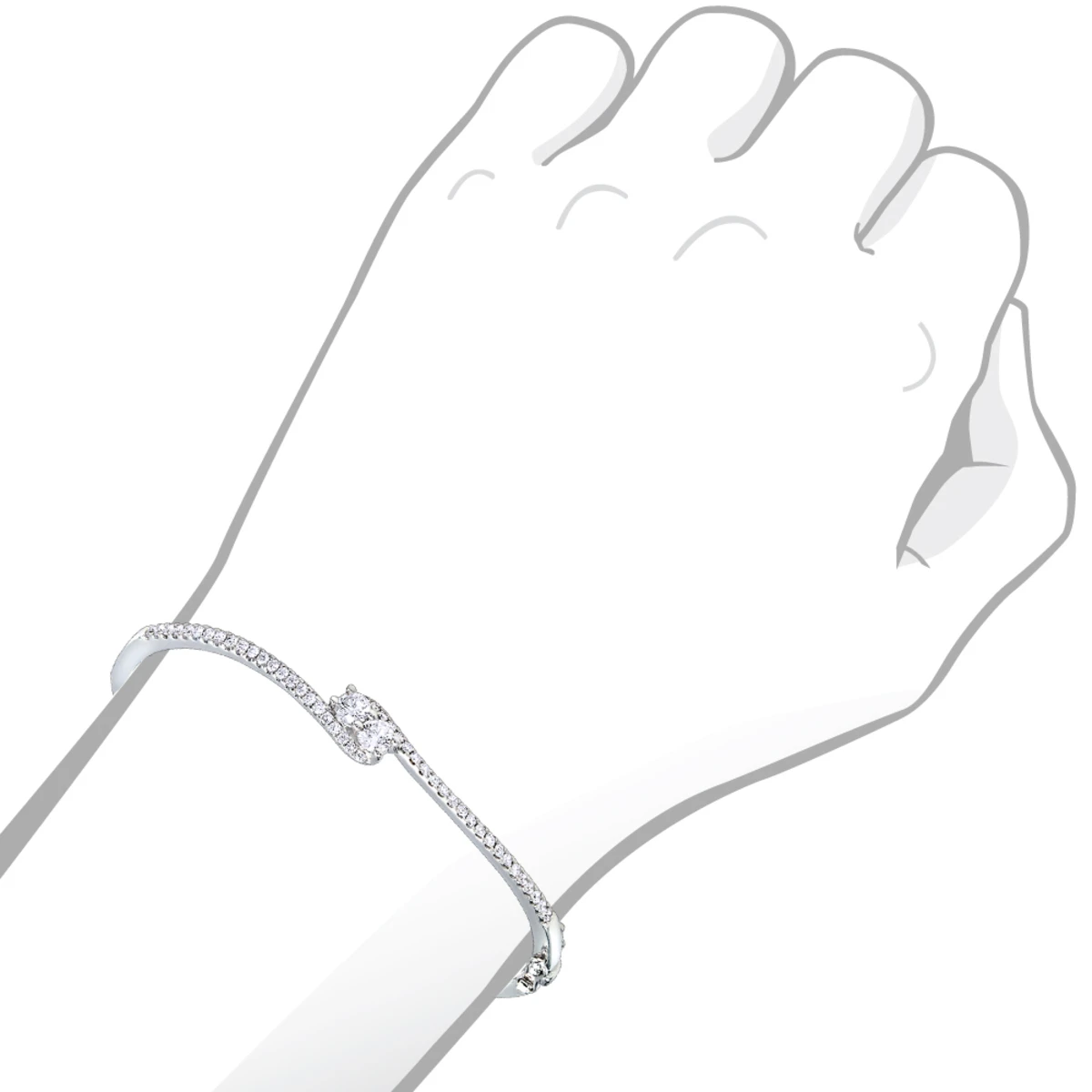 Love And Friendship Women’s Diamond Bangle Bracelet 14K White Gold 1.1ct Luxurman