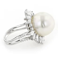 18K White Gold Ladies Pearl & Marquise Diamond Ring For Women 2.92ct