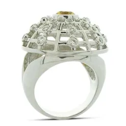 Yellow Sapphire Cocktail Ring With Diamonds 14K White Gold 0.60ctd 1.00cts