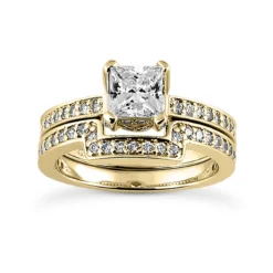 14K White Gold Designer Prong Set Diamond Engagement Ring Set 1.60ct