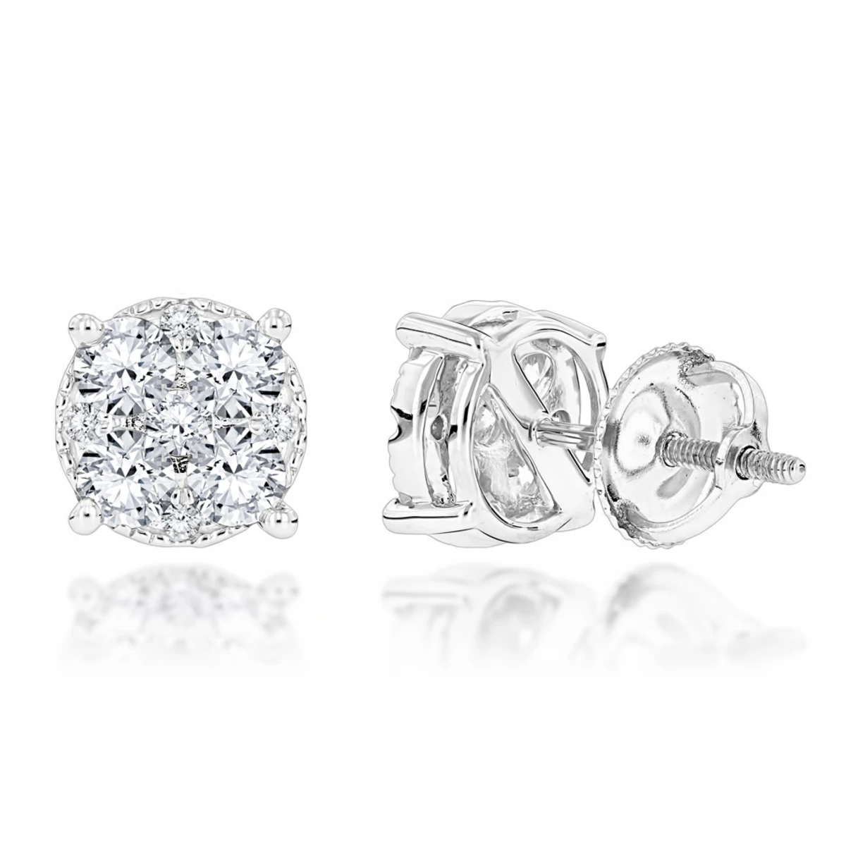 Sparkling Round Diamond Cluster Earrings Studs For Men & Women 14K White Gold