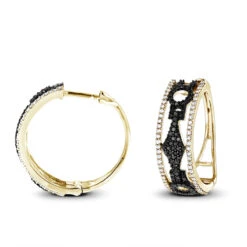 White And Champaign Diamond Hoop Huggie Earrings 0.47ct 14K White Gold