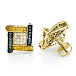 White Yellow And Black Diamond Stud Earrings 2.20ct 14K White Gold