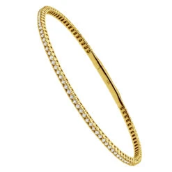 This gorgeous sparkling diamond bangle bracelet for women by LUXURMAN is truly unique and features rows of round miracle diamonds on both sides of the bracelet accentuated with the dramatic sparkle composite of round and baguette diamonds in a unique pattern in between. Total carat weight of diamonds is 3 carats, the bracelet is 12mm wide in the center and is available in 14K Yellow, White and Rose Gold. The bracelet fits any daily or evening attire, its beauty represents the elegance and chic. This stunning ladies diamond bracelet is ‘must –have’ addition to your beautiful jewelry collection!