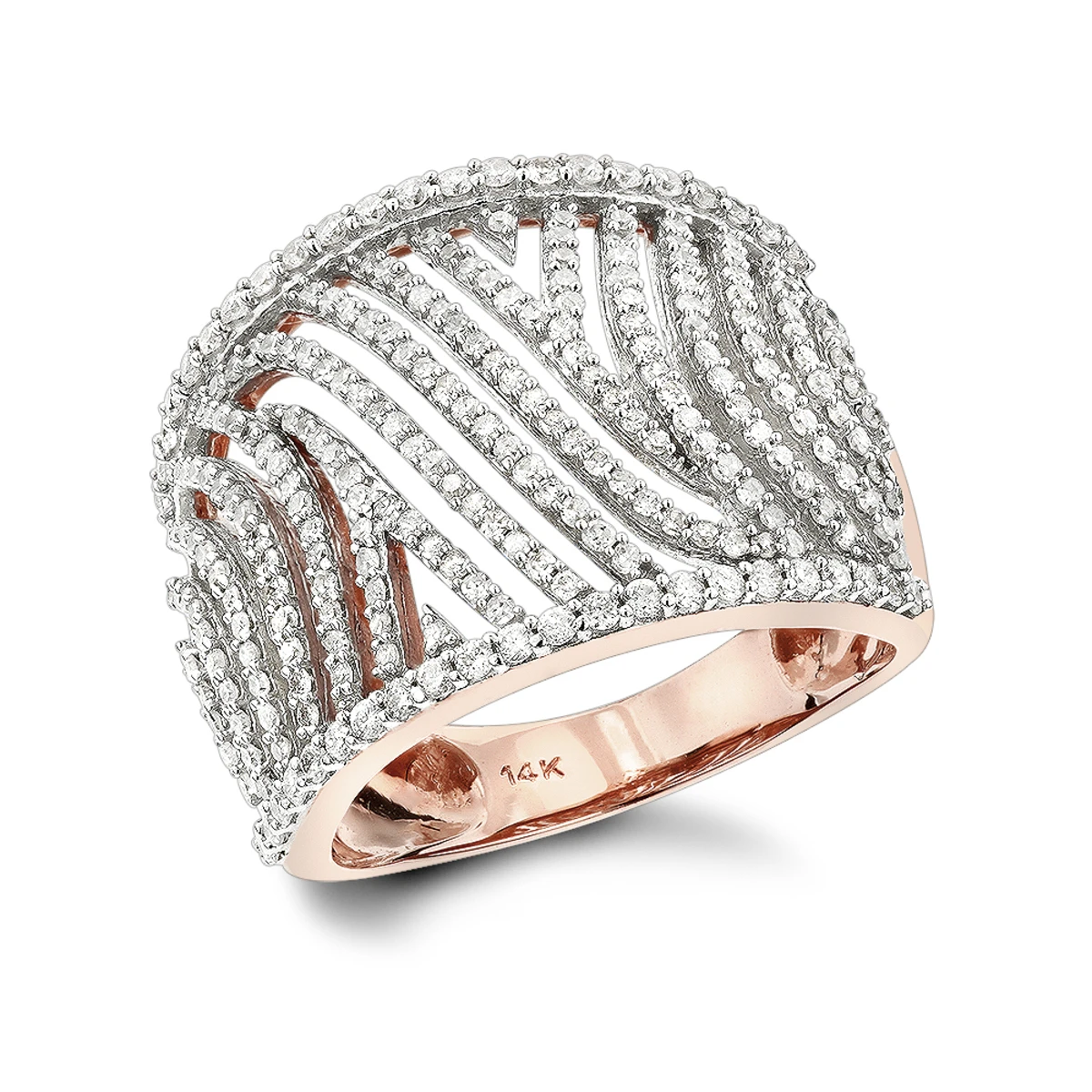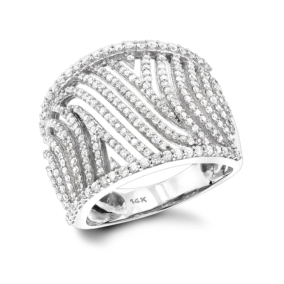 Unique Diamond Rings: This 14K Gold Cut-Out Diamond Ring showcases 1 ctw of sparkling round diamonds. Featuring an intricate wave design and a highly polished gold finish, this women’s diamond ring is available in 14K white, yellow and rose gold.