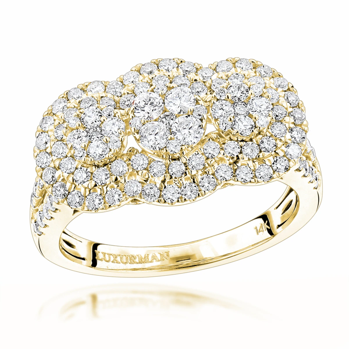 This Unique Luxurman Double Halo Cluster Diamond Engagement Ring showcases 1.6 carats of dazzling high quality round diamonds masterfully set in solid 14K Gold base. This ladies past present future engagement ring is available in 14K white gold, yellow gold and rose gold. This unique women’s diamond ring will make a great choice for your special occasion!